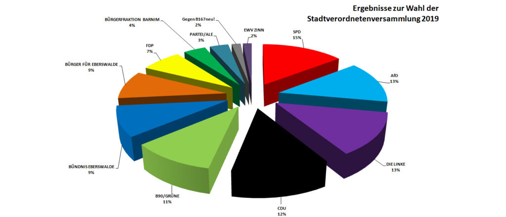 Nach der großen Enttäuschung über das bittere und ganz knappe Verfehlen einer Verdopplung unserer Sitze, können wir dennoch feststellen, dass wir bei dieser Kommunalwahl sehr erfolgreich waren. Denn wir haben unsere Stimmen fast verdoppelt, uns um knapp 3% bei der Stimmverteilung verbessert und haben mit drei Sitzen nun einen Sitz mehr im Stadtparlament. Für uns ziehen ein: Thomas Stegemann (900), Götz Herrmann (542) und Katja Lösche (314). Gegenüber den bürgerlichen Parteien, die allesamt teils heftige Verluste erlitten haben (ausgenommen „Bündnis90/Die Grünen“), konnten wir den Abstand stark verringern. Die FDP konnten wir sogar überholen und fragen uns, ob das stagnierende Ergebnis der Bürgermeisterpartei vielleicht auch ein Weckruf für die Rathausspitze sein könnte. Sehr nachdenklich stimmt uns allerdings, dass neue Gruppierungen ins Parlament gewählt wurden, die inhaltlich nur ein Thema oder gar kein Thema für Eberswalde haben.